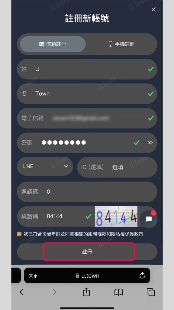 - 若上述仍無法排除,請您聯繫U.Town客服或使用郵箱註冊