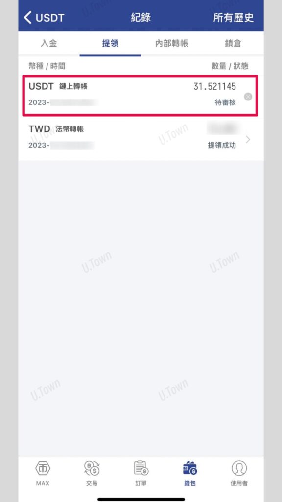 3.回到MAX交易所App,點擊右下角錢包,點擊USDT