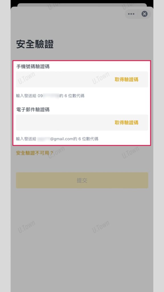 9.輸入幣安手機認證碼與信箱認證碼